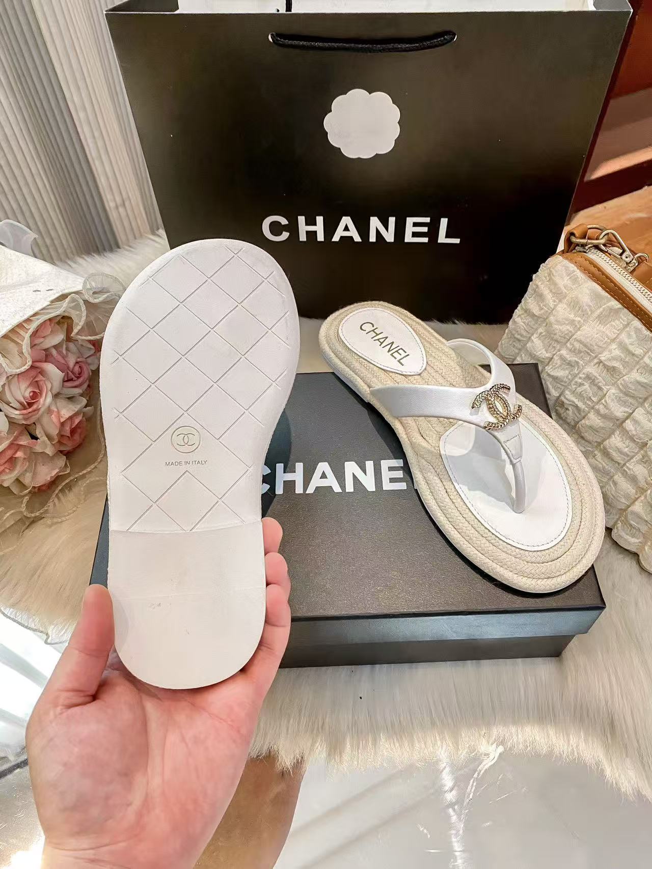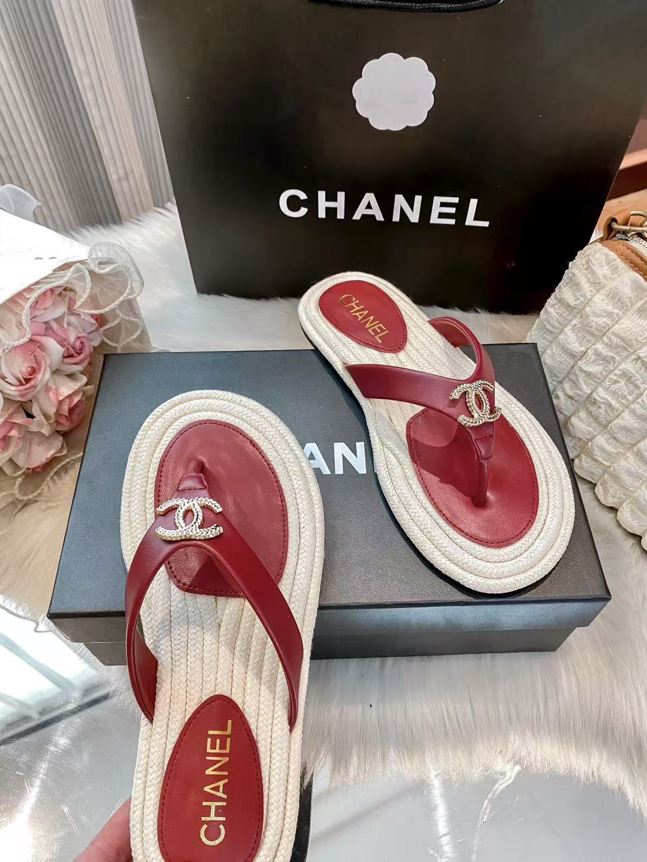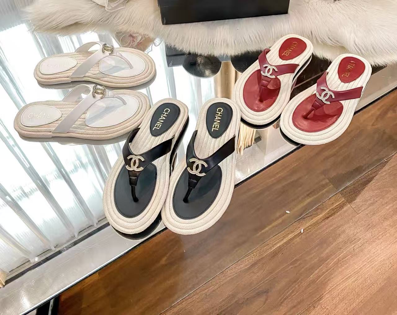 CHANE1 ダブルCカラーブロックフラットスリッパ【50%割引+送料無料】