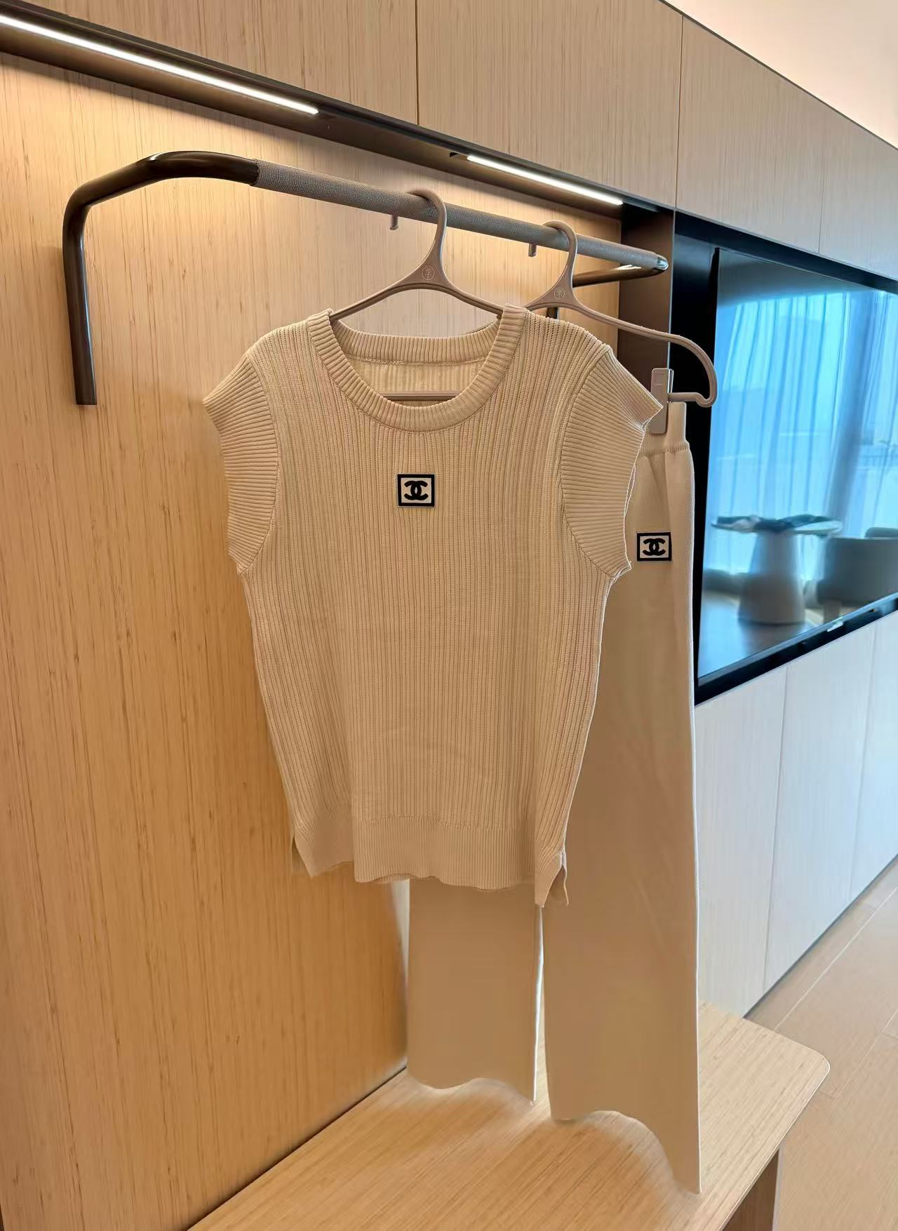 CHANE1 ダブルC ニットベスト+パンツ ツーピースセット【50%割引+送料無料】