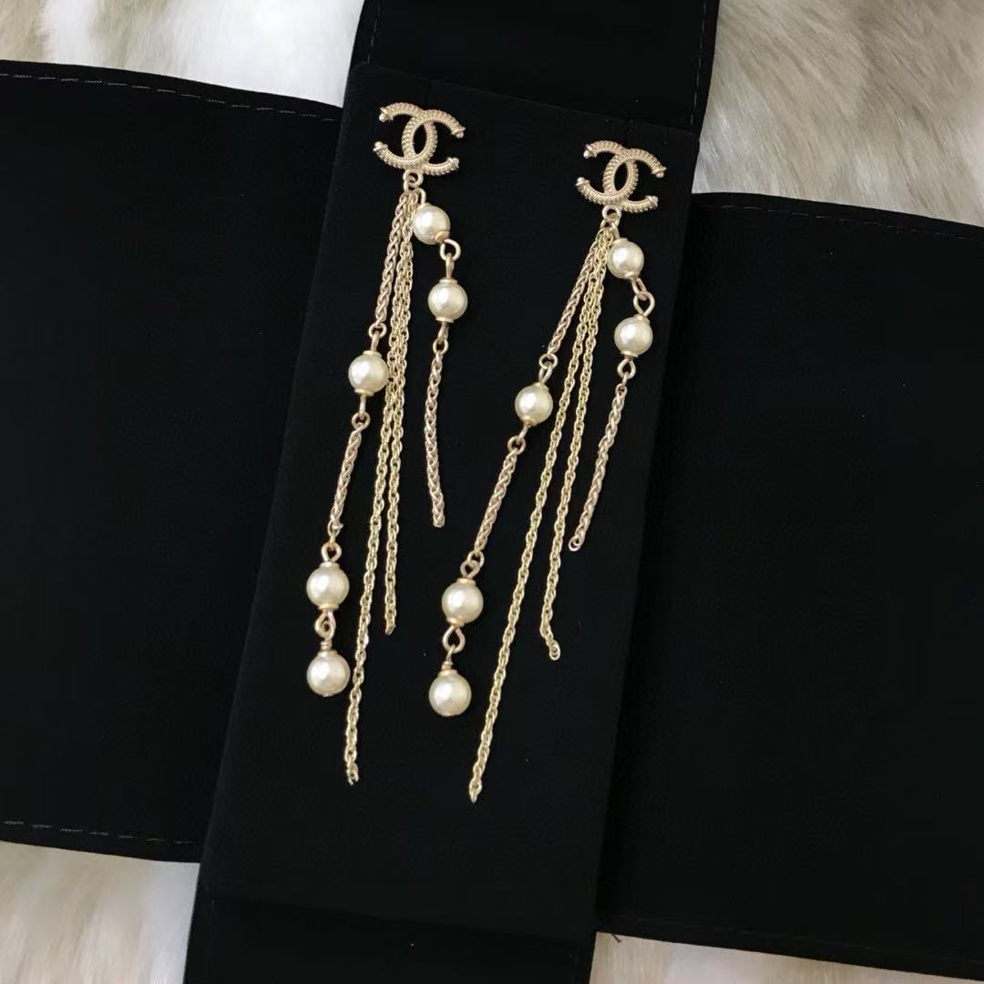 CHANE1 パールダブルCタッセルイヤリング【 50%割引+送料無料】