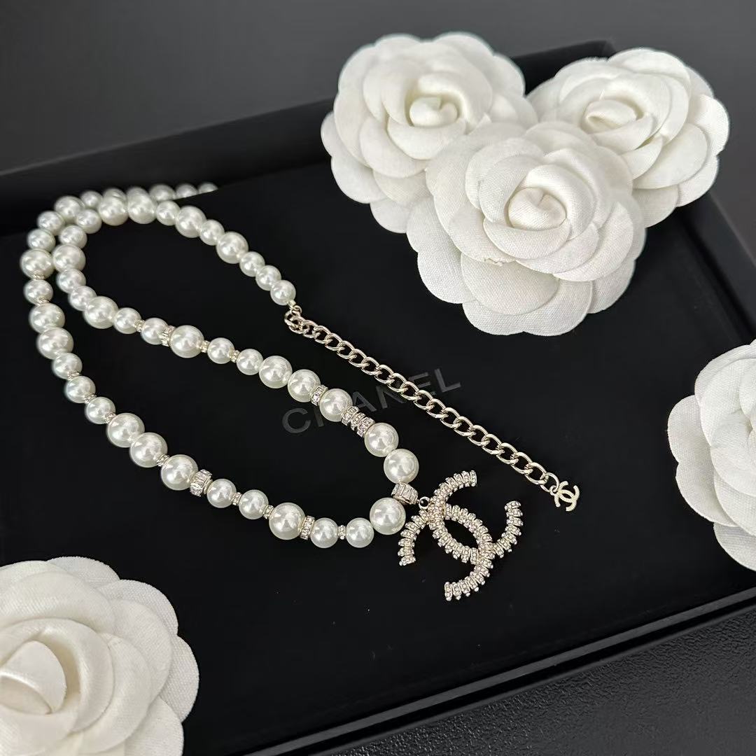 CHANE1 ダブルC パールネックレス