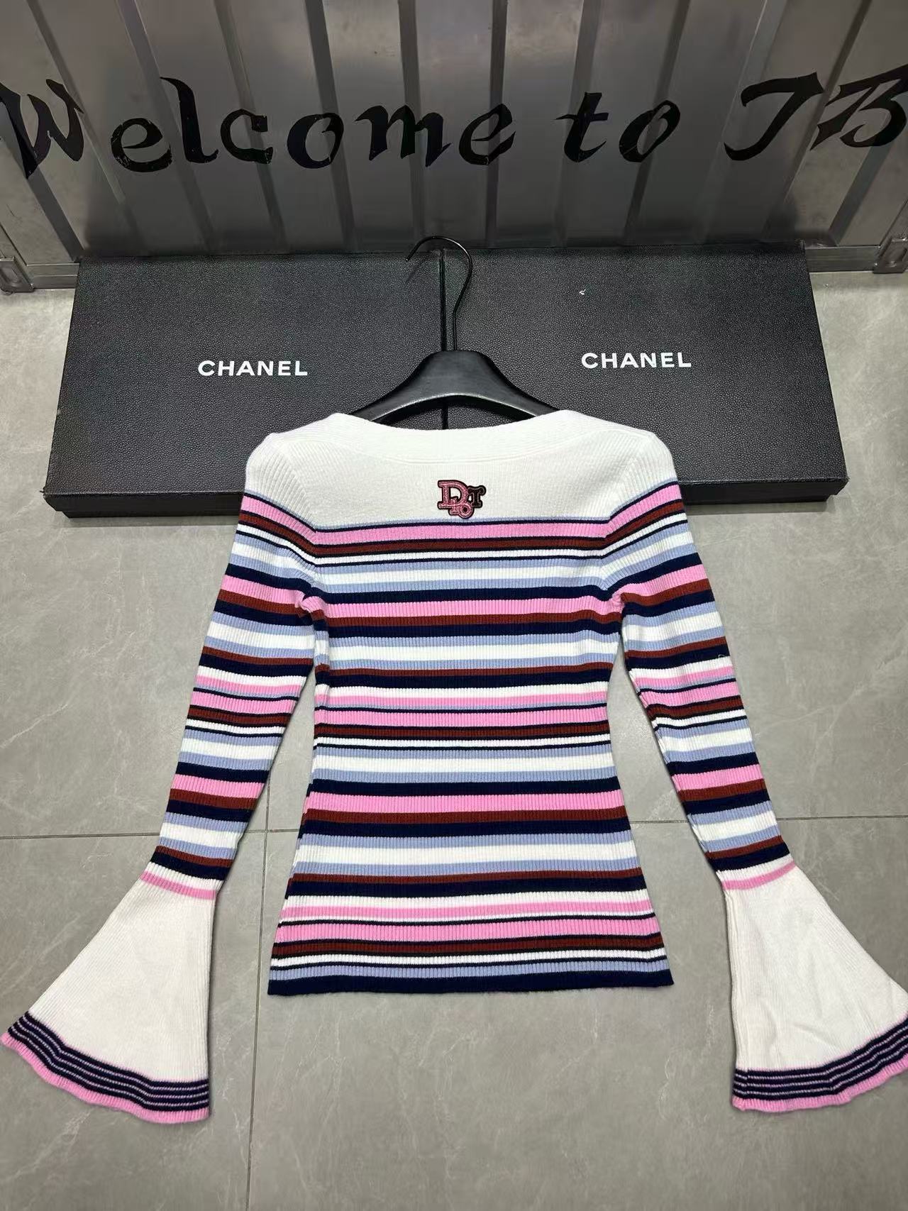 DI0R CD ストライプオフショルダーセーター【50%割引+送料無料】