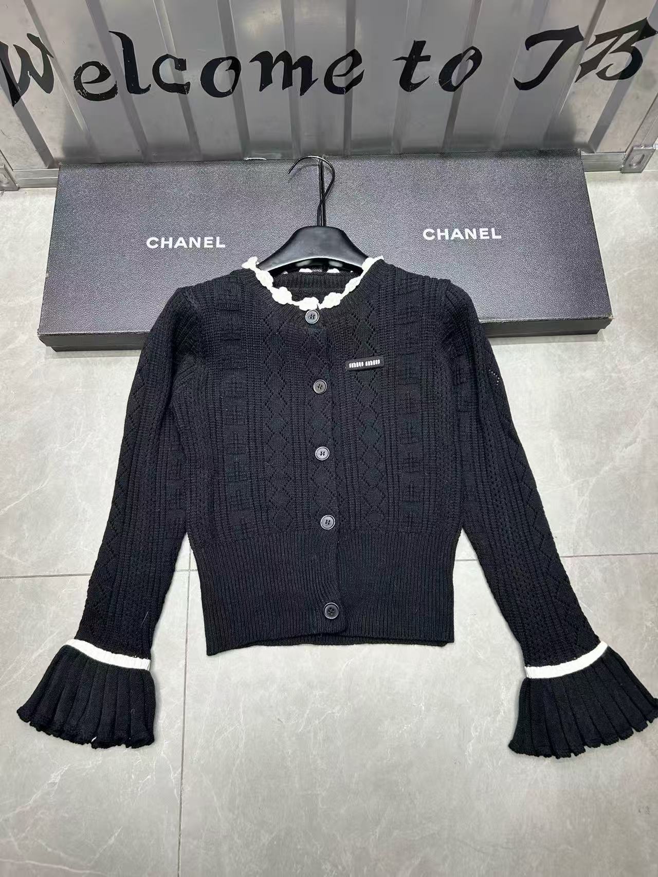 M1UM1U レーストリムフレアスリーブウールカーディガン【50%割引+送料無料】